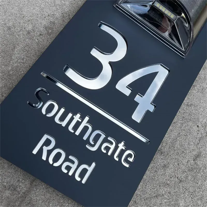 Verleihen Sie der Außenseite Ihres Hauses mit unserem exquisiten Solarleuchten-Hausschild mit Lasergravur eine Note von Raffinesse. Mit einem zweilagigen Hohlraum-Design vereint dieses einzigartige Schild Praktikabilität mit künstlerischem Flair.